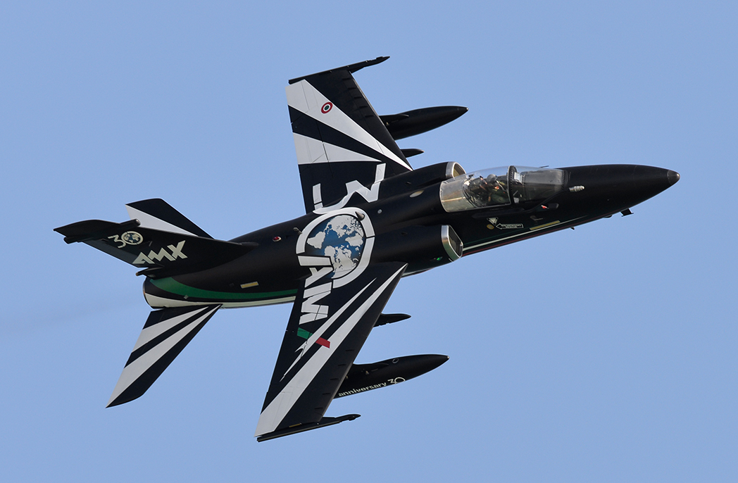 La PAN ha regalato ai presenti un display acrobatico completo, eseguito come sempre con la massima precisione e dinamismo. Al termine dell’esibizione si è ripresentata la formazione di AMX, da cui si sono staccati gli “speciali”, che hanno mostrato sui rispettivi timoni di coda le livree artistiche “bifacciali”, rappresentative dei sei gruppi di volo, in cui il velivolo ha prestato servizio.