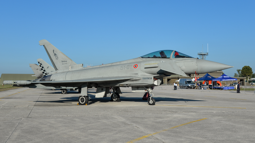 Proprio il Typhoon ha costituito il secondo motivo di novità ed interesse per il pubblico degli appassionati ed i tanti spotter presenti il 13 settembre. Infatti a capofila dello schieramento di velivoli in mostra statica “troneggiava” il primo esemplare riportante i codici del 51° Stormo (51-01), assegnato al 132° Gruppo.